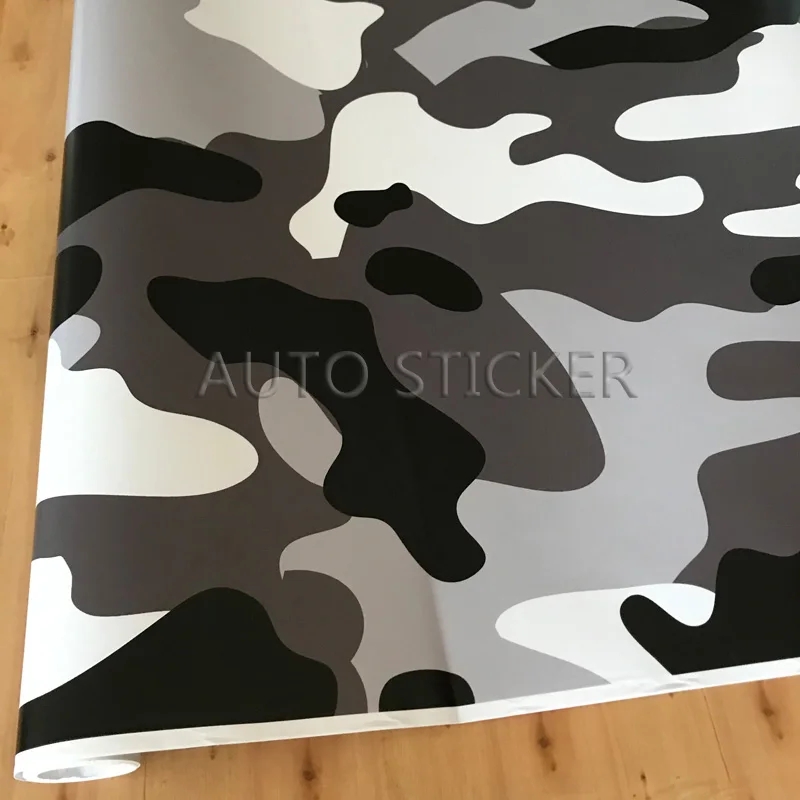 Speciale aanbiedingen 5/10/15/20/25/30 m * 1.52 m Grote Zwart Wit Grijs Sneeuw camo Vinyl Zwart Camouflage Auto Wrap Vinyl Sticker Vel Digitale Decals Goedkoopste online
