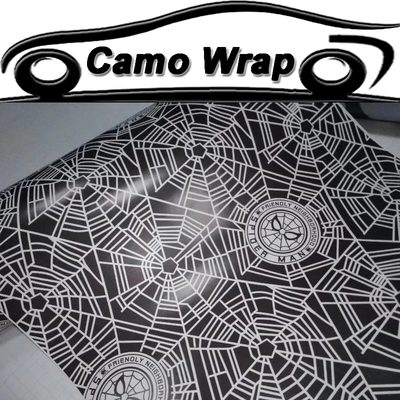 Best Price Spiderman Spider Web Vinyl Film Camo Auto Wrap Spider Man Sticker Voertuig Wrapping Film Met Luchtbel ORINO WRAPS