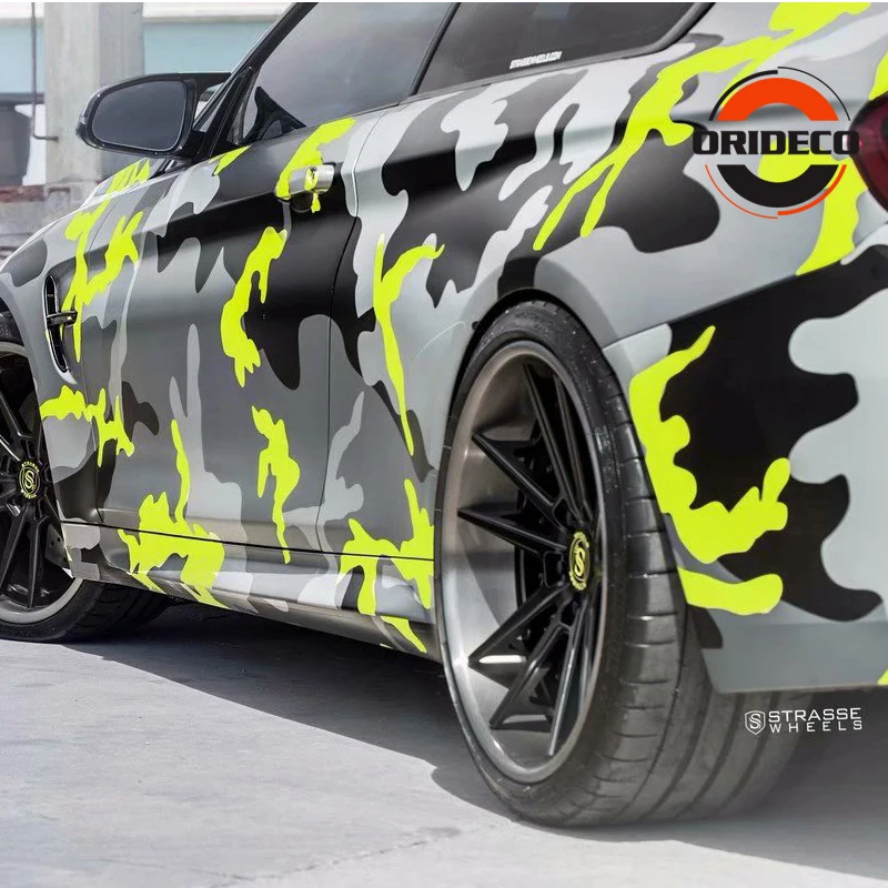 Best Offers 5/10/15/20/25/30 m * 1.52 m Geel Grijs Zwart Camouflage Folie vinyl Fluorescerend Geel Zwart Camo Vinyl voor Auto Voertuig Body Wraps