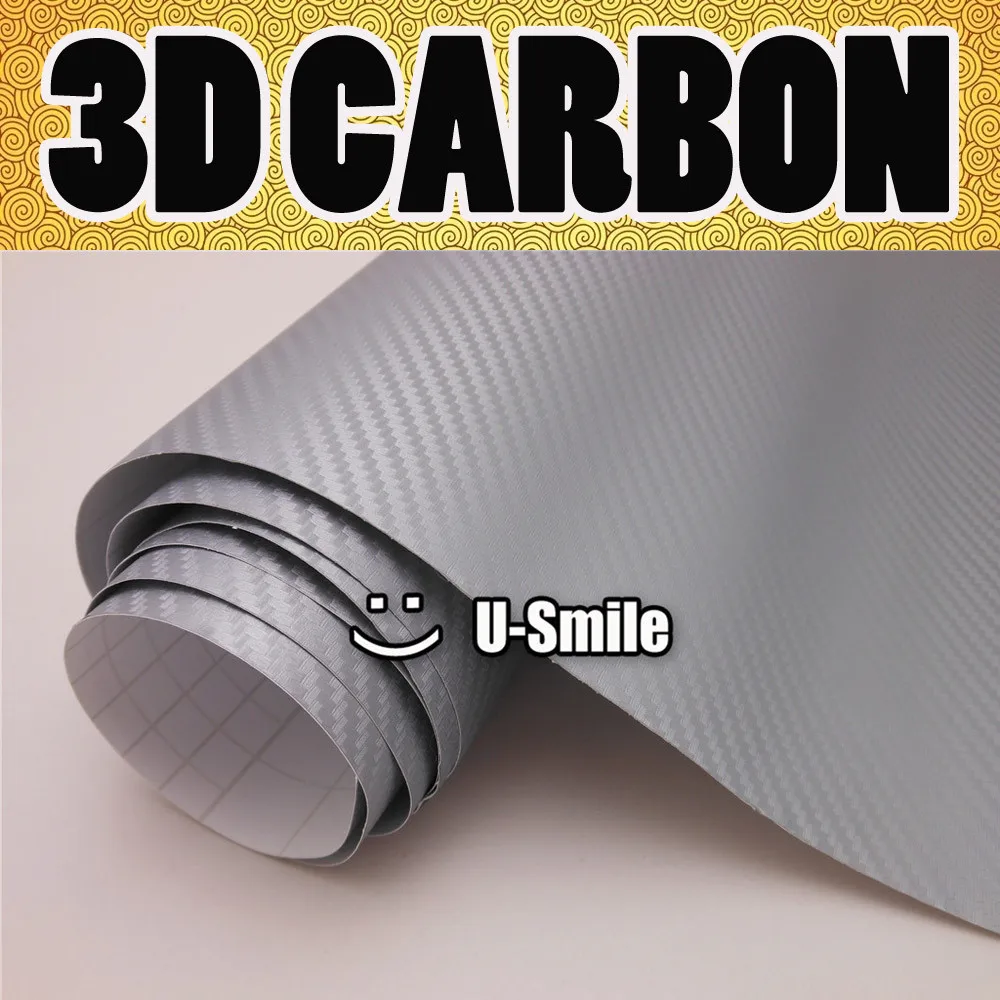 Best Offers Premium 3D Zilveren Koolstofvezel Plaat Zilver 3D Carbon Fiber Vinyl Wrap Air Release Car Wrapping Grootte: 1.52X30 m/Roll