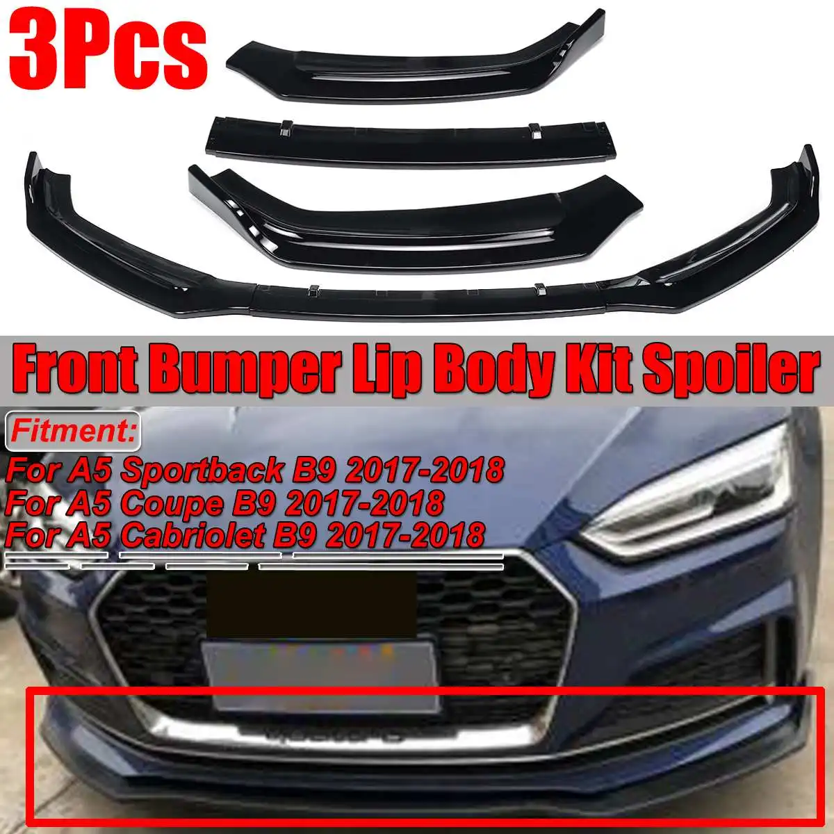 Best Price Nieuwe 3PCS Glossy Zwart/Carbon Fiber Look Auto Voorbumper Lip Spoiler Splitter Guard Cover Trim Voor Audi a5 B9 2017 2018 2Dr/4Dr