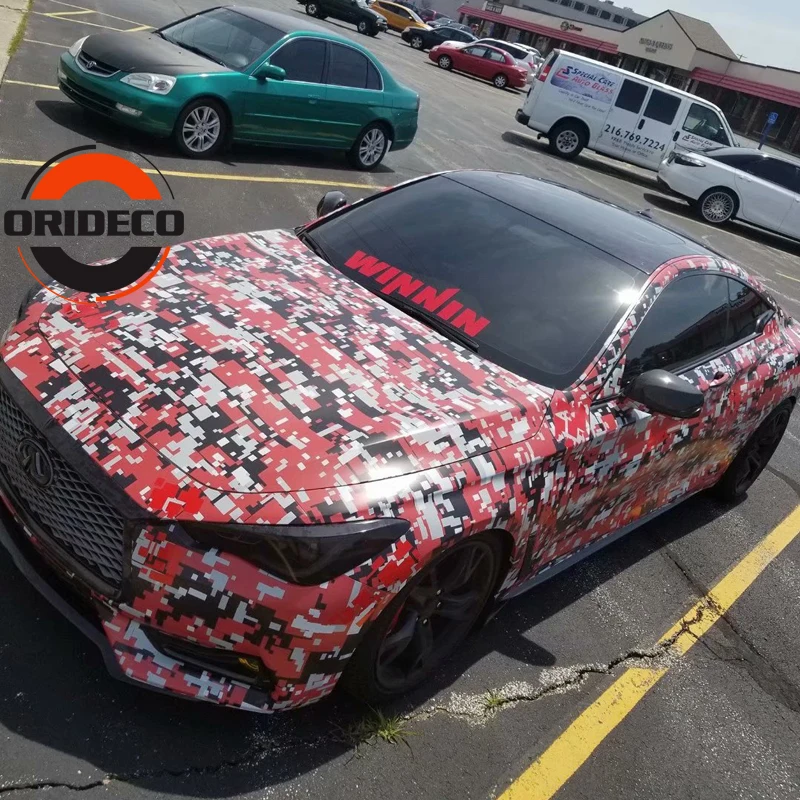 Best Offers 5/10/15/20/25/30m * 1.52m Nieuw Rood & Wit & zwart Digitale Camouflage Auto Sticker Digit Camo Vinyl voor Auto Voertuig Body Wraps