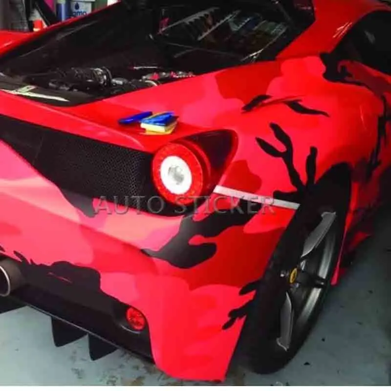 Best Price 5/10/15/20/25/30 m * 1.52 m Rood Zwart Grote Camo Vinyl auto Wrap Sneeuw Camouflage Film met air gratis voor boot/Vrachtwagen Voertuig