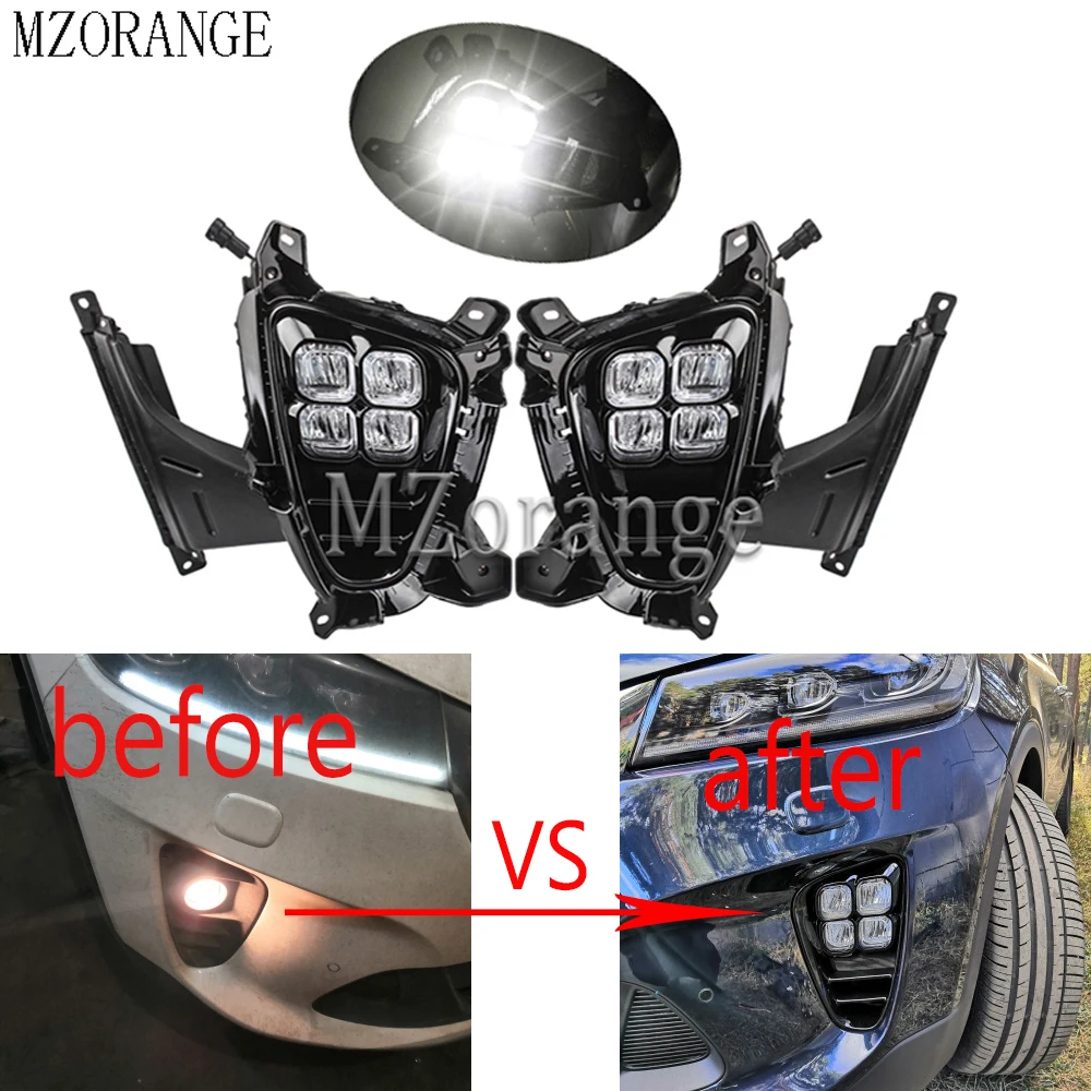Beste prijs 2 Stuks Led-dagrijverlichting Voorbumper Led Fog Light Lamp Voor Kia Sorento 2018 2019 Drl Mistlamp vervanging Dag Licht Compareand