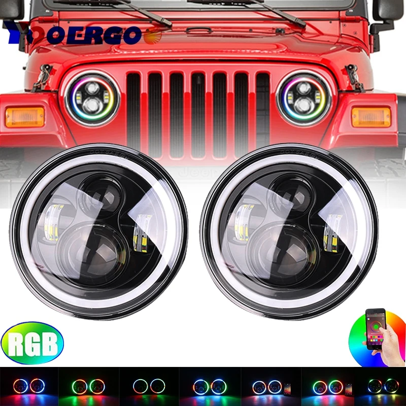 ^ Goedkoop Onlangs Gelanceerd Auto Accessoires 7 \Angel Eye Halo Zelf Aangedreven/Automatische Rgb Koplampen Voor Jeep Wrangler Jk tj Lj Hummer H1 H2 Goedkoopste online