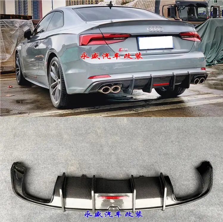 Special Price Hoge Kwaliteit Carbon Fiber Rear Bumper Lip Spoiler Diffuser Cover Voor Audi A5 S5 2017 2018 2019 2020 (Met lamp) door Fedex