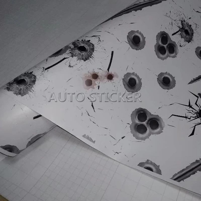Beste prijs 5/10/15/20/25/30 m * 1.52 m Wit Simulatie bullet gat Camo Vinyl Sticker voor auto auto decoratie camouflage wrap vinyl film Lage kosten