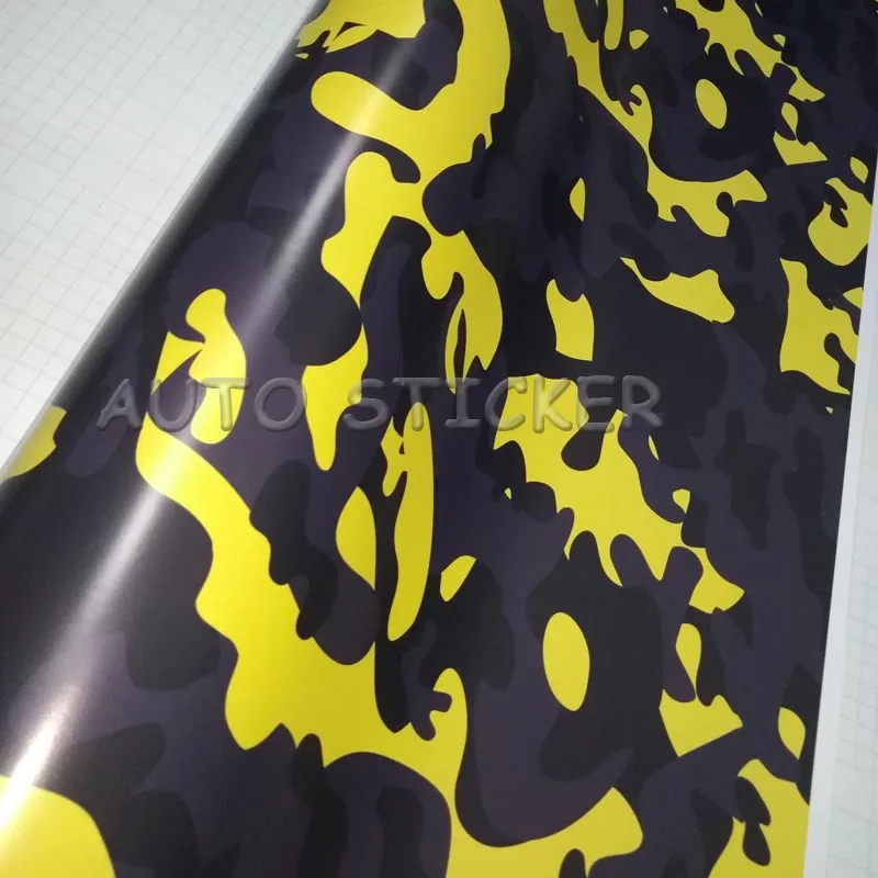 Beste prijs Geel Zwart Afdrukken Camo Vinyl Auto Wrap Styling Met luchtbel Gratis Pixel Geel Camouflage Grafische Auto Sticker Film Te koop