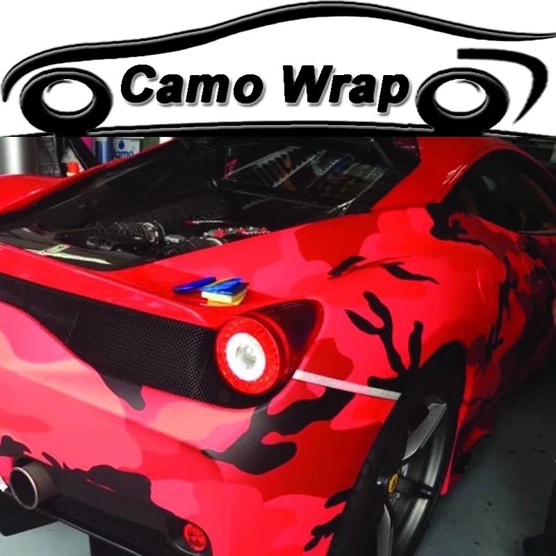 ^ Goedkoop Auto styling Zwart Rood Vinyl Film Camouflage Auto Wrap met air gratis Adhesive Auto Sticker Decal Voertuig Boot Body Wrapping folie Goedkoopste