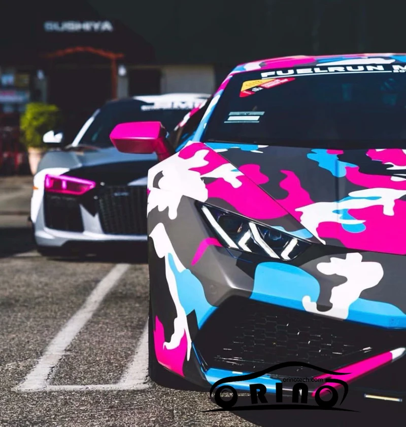 Speciale aanbiedingen Verbazingwekkende Kleurrijke Zwart Grijs Wit Blauw Rood Vinyl Film Auto Sticker Camouflage Voertuig Boot Motorfiets Wrap Decal ORINO Wikkelen Te koop