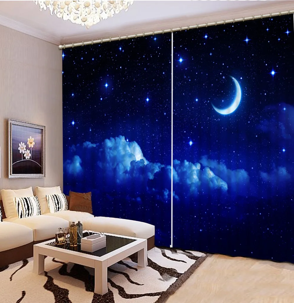 Best Price Moderne gordijnen voor woonkamer auto gordijn badkamer hoge plafond gordijnen Witte wolk maan verduisterende gordijnen
