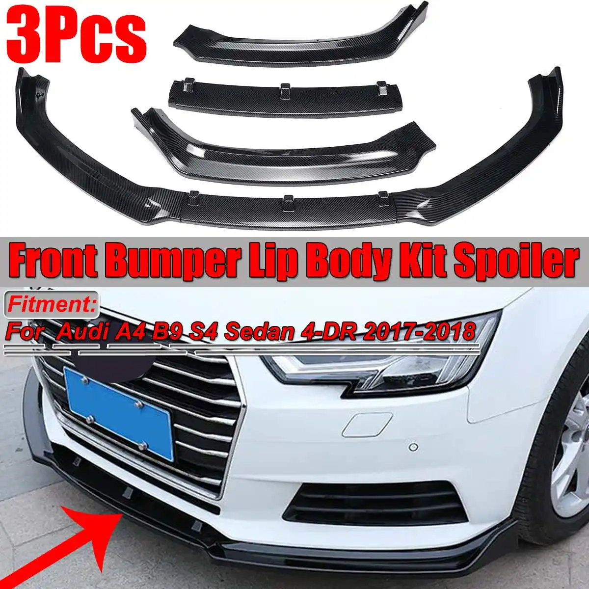 Special Price Heldere Zwart/Carbon Fiber Look 3 Pcs Auto Voorbumper Lip Body Kit Spoiler Splitter Diffuser Voor Audi A4 b9 S4 Sedan 2017 2018