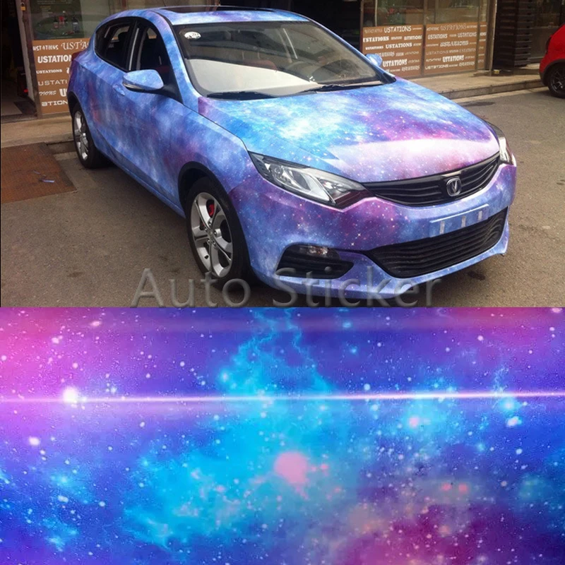 ^ Goedkoop 1.52*5/10/15/20/25/30 m Blauw Paars Ruimte Galaxy Vinyl Auto wrap Film Camo Gedrukt Vinyl Glossy Galaxy stickerbomb Die Beoordelingen