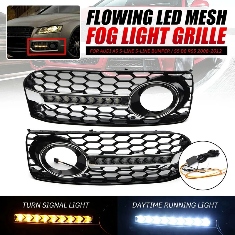 Special Price 2 Stuks Voor Roosters Bumper Mistlamp Grille Lagere Side Honingraat Met Drl Grille Voor Audi A5 S5 2 Deur coupe 2008-2012 RS5 B8 8T0
