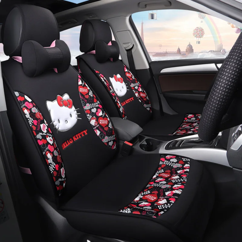 Cheap Cartoon Auto Stoelhoezen Leuke Hello Kitty Autostoeltjes Kussens Set Vier Seizoenen Auto Kussen Universeel Voor Alle Auto Styling model